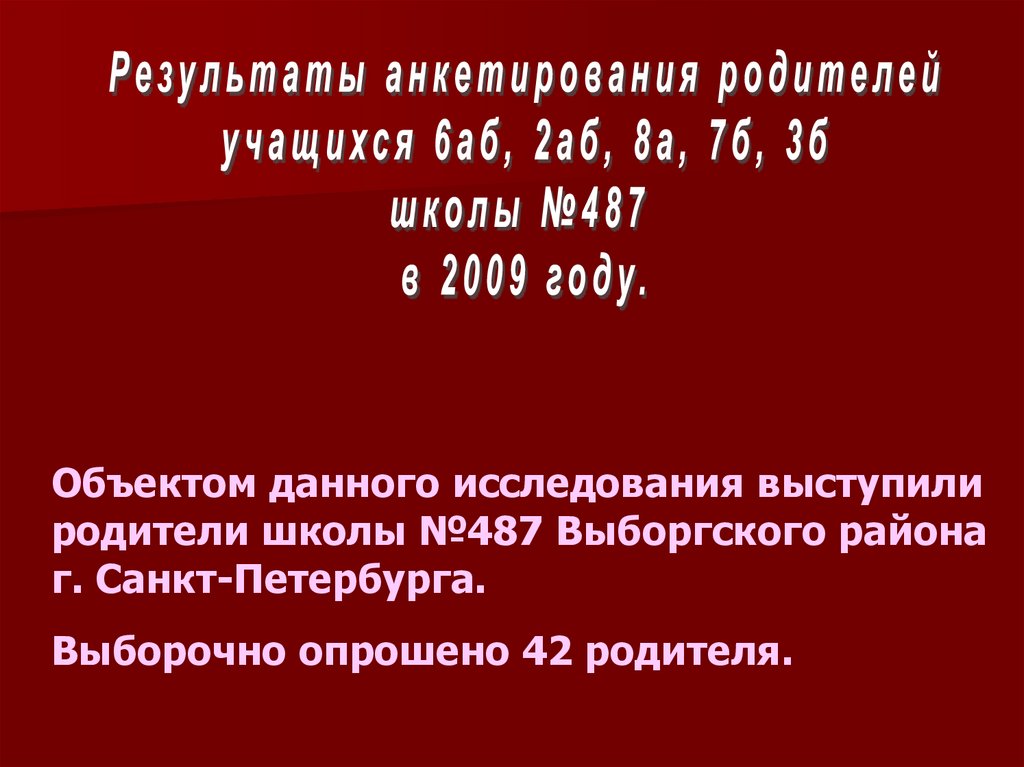Результаты анкетирования родителей учащихся 6аб, 2аб, 8а, 76, 3б школы №487 в 2009 году