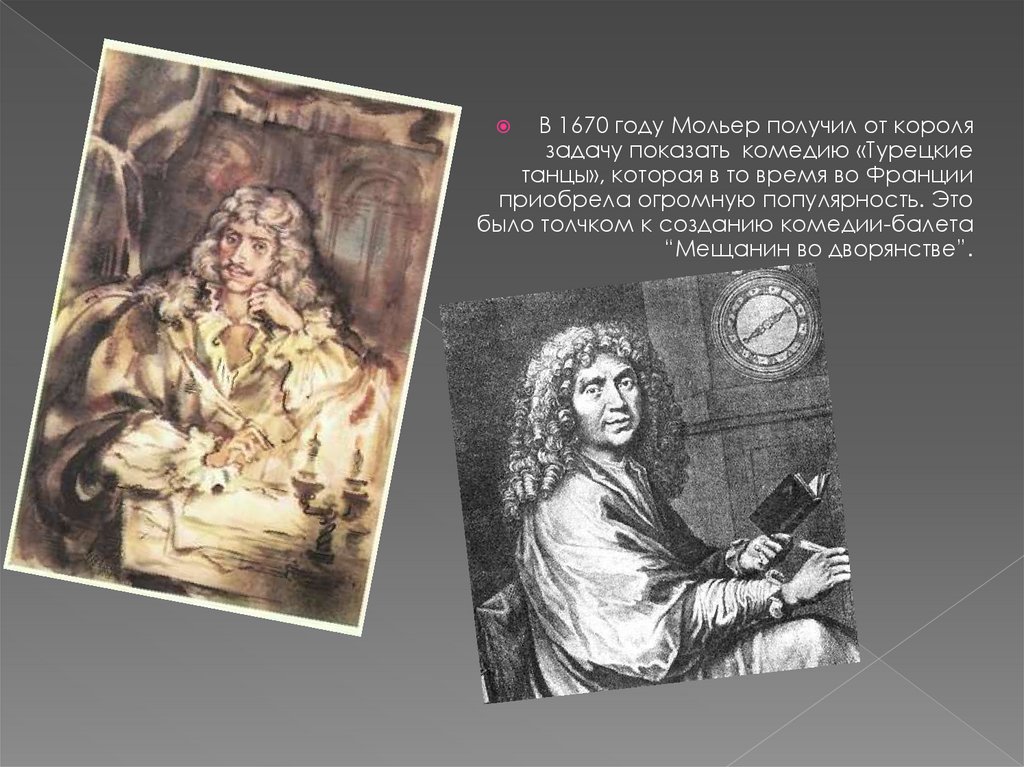 В 1670 году Мольер получил от королязадачу показать комедию «Турецкие