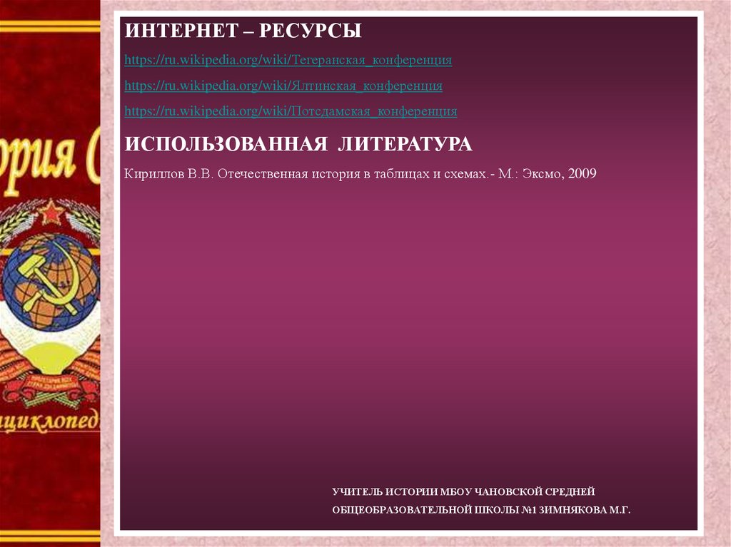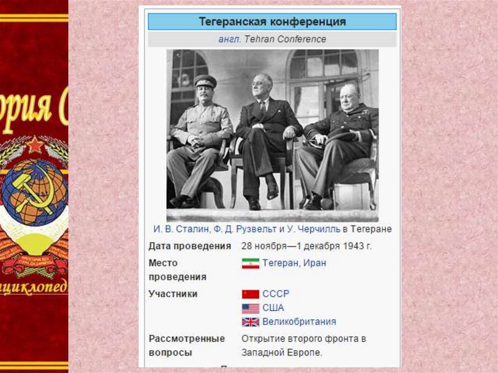 ИНТЕРНЕТ – РЕСУРСЫhttps://ru.wikipedia.org/wiki/Тегеранская_конференция