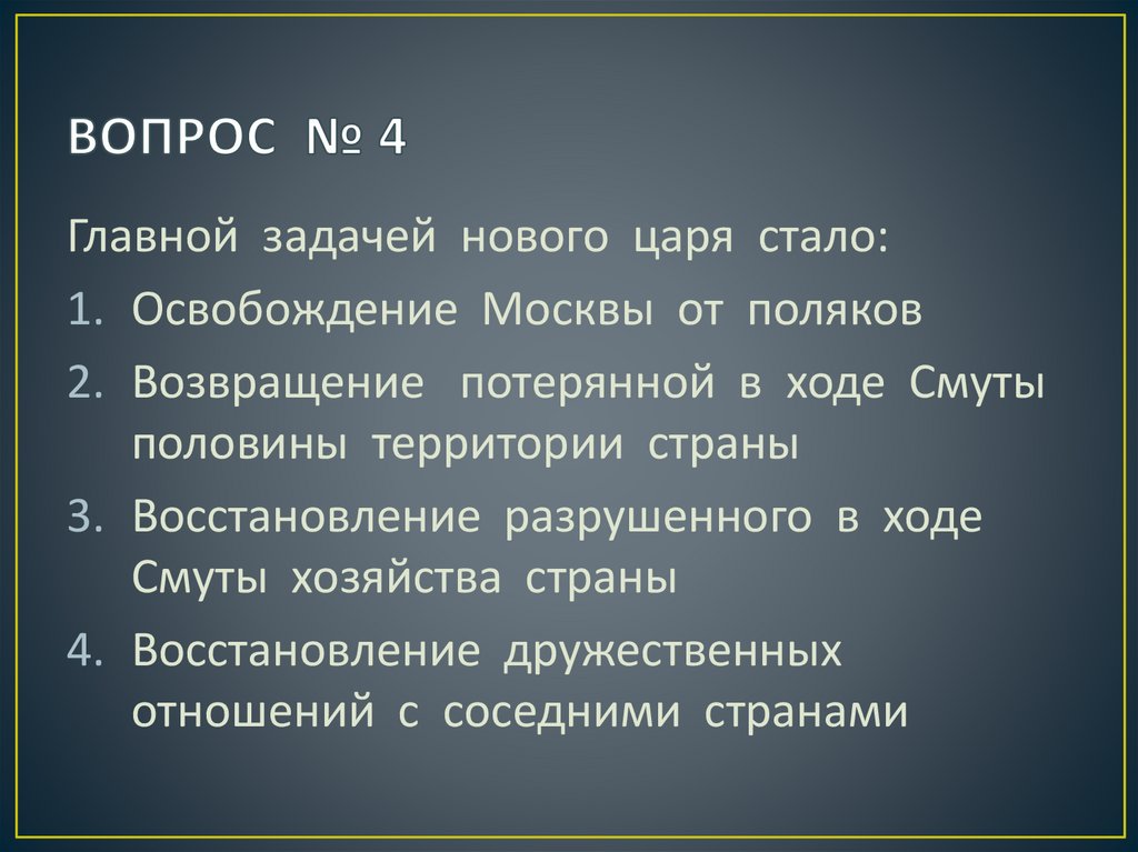 Главной задачей нового царя стало:1. Освобождение Москвы от поляков