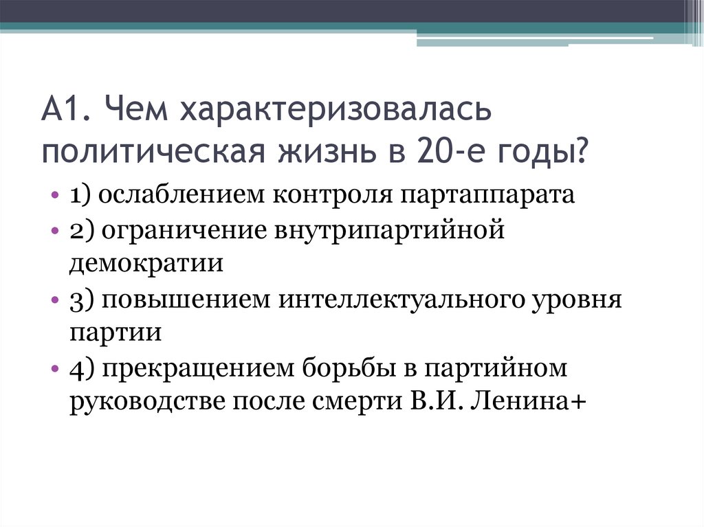 А1. Чем характеризоваласьполитическая жизнь в 20-е годы?