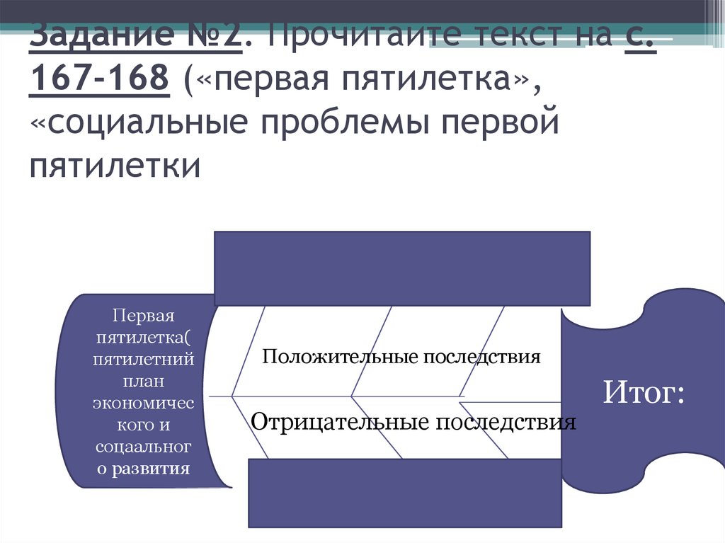 Задание №2. Прочитайте текст на с.167-168 («первая пятилетка»,