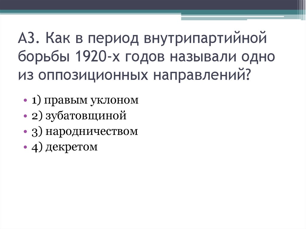 А3. Как в период внутрипартийнойборьбы 1920-х годов называли одно