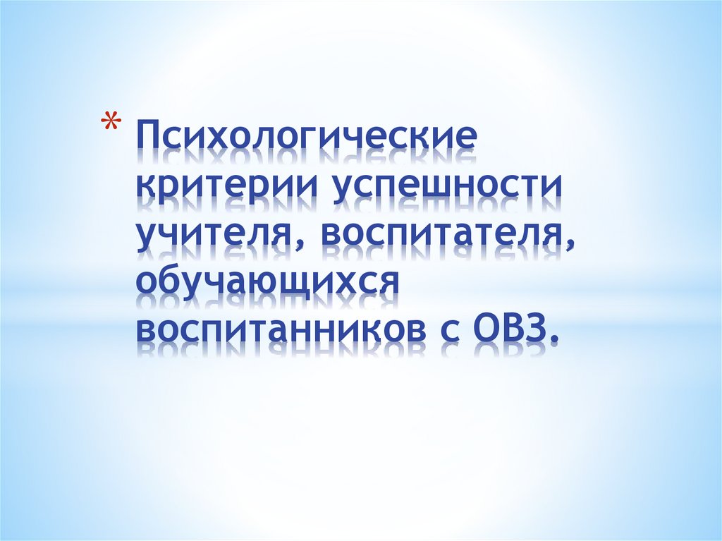 Психологические критерии успешности учителя, воспитателя, обучающихся воспитанников с ОВЗ