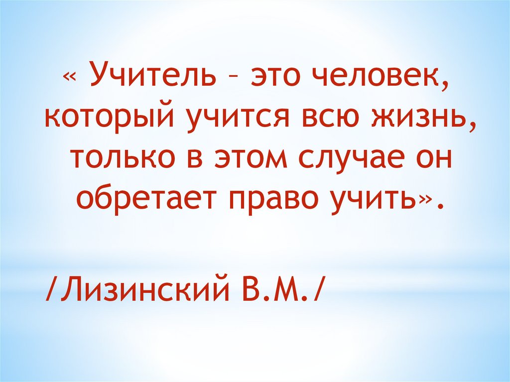 « Учитель – это человек,который учится всю жизнь,
