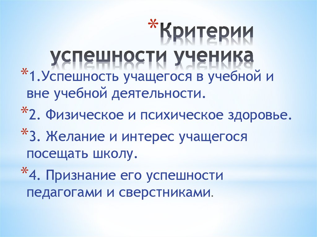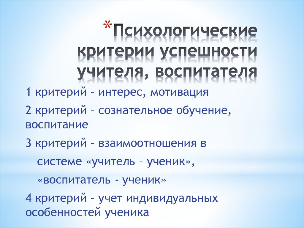 * Психологическиекритерии успешности