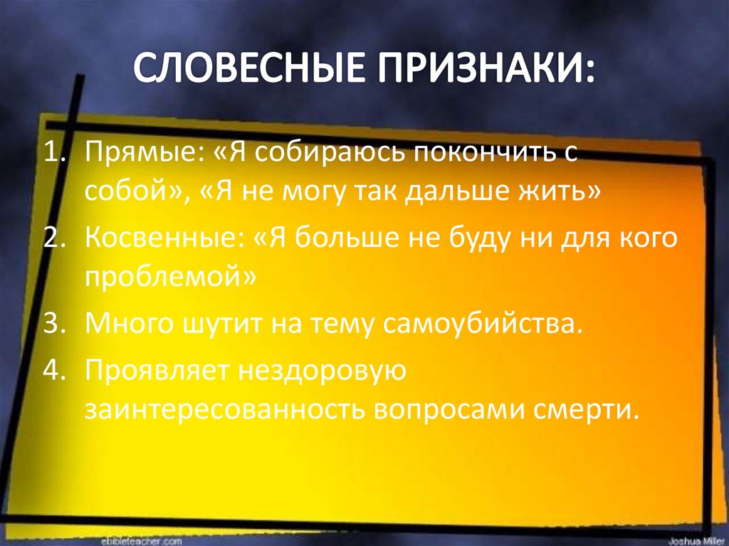 1. Прямые: «Я собираюсь покончить ссобой», «Я не могу так дальше жить»