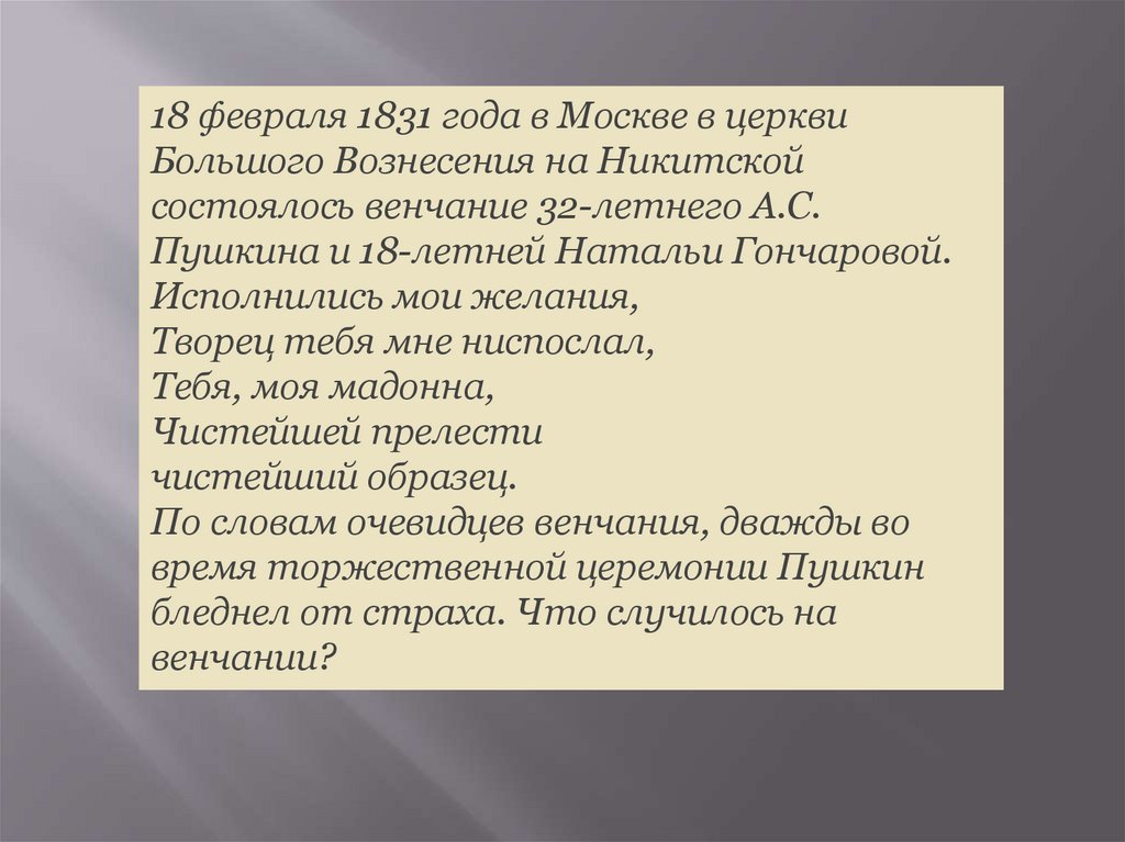 18 февраля 1831 года в Москве в церквиБольшого Вознесения на Никитской