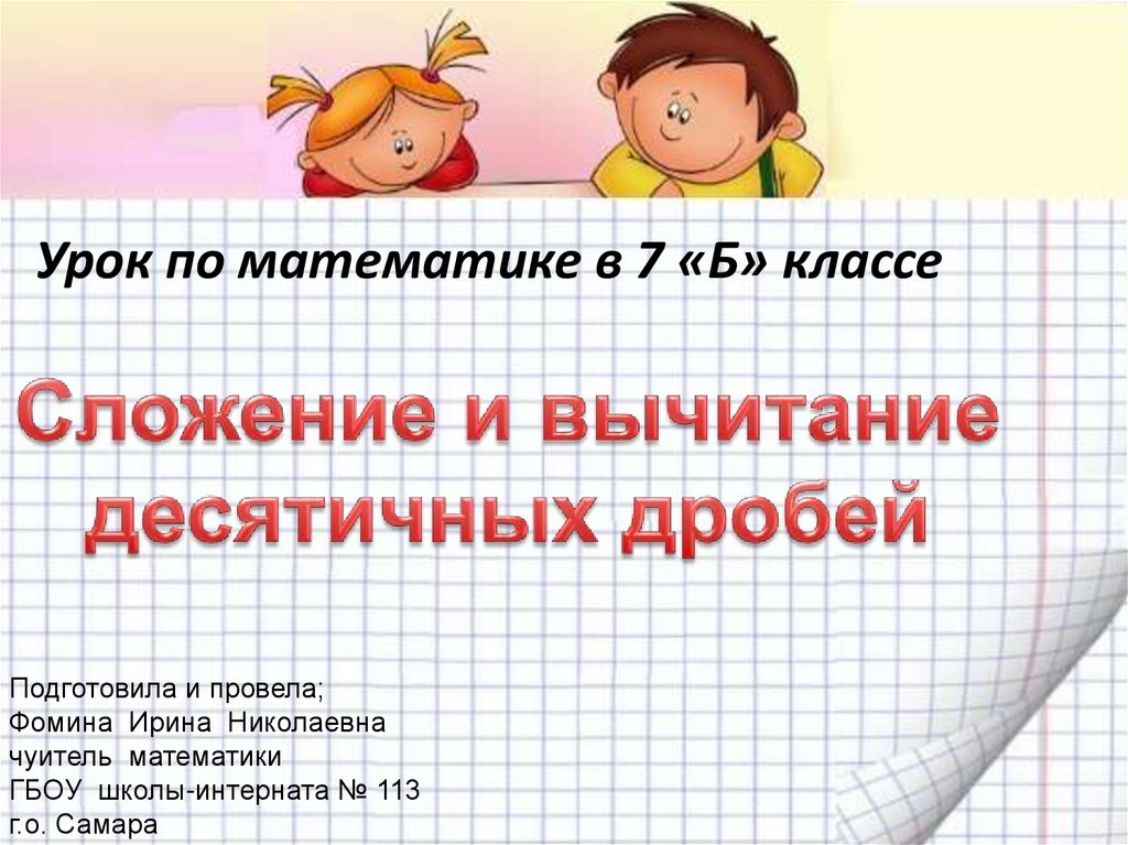 Сложение и вычитание десятичных дробей. Урок по математике в 7 класс