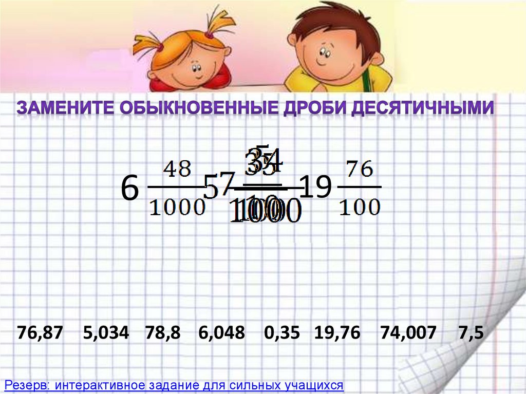 Резерв: для сильных учащихся интерактивное заданиеигра-пазл «Сложение десятичных дробей»