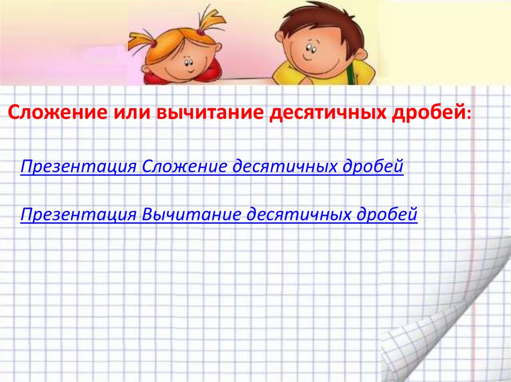 Сложение или вычитание десятичных дробей:Презентация Сложение десятичных дробей