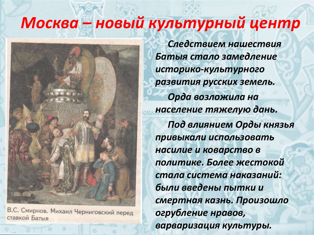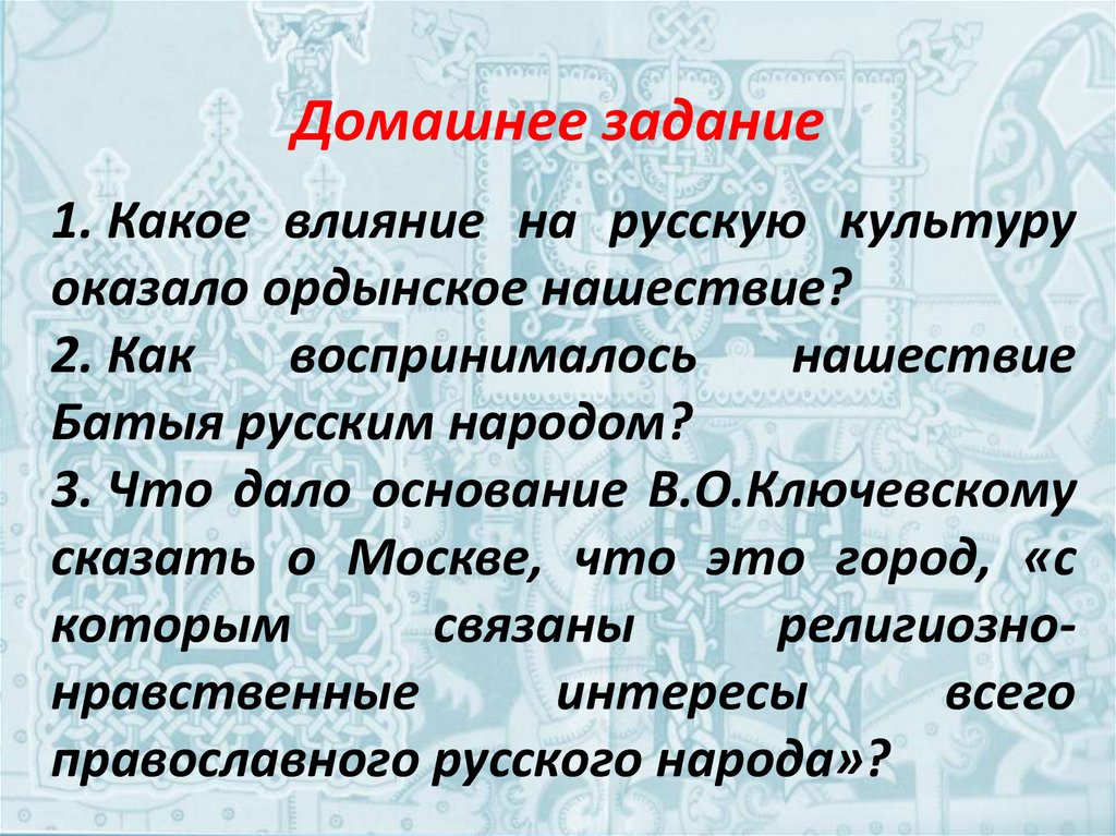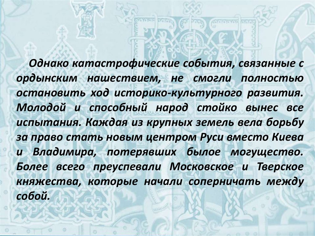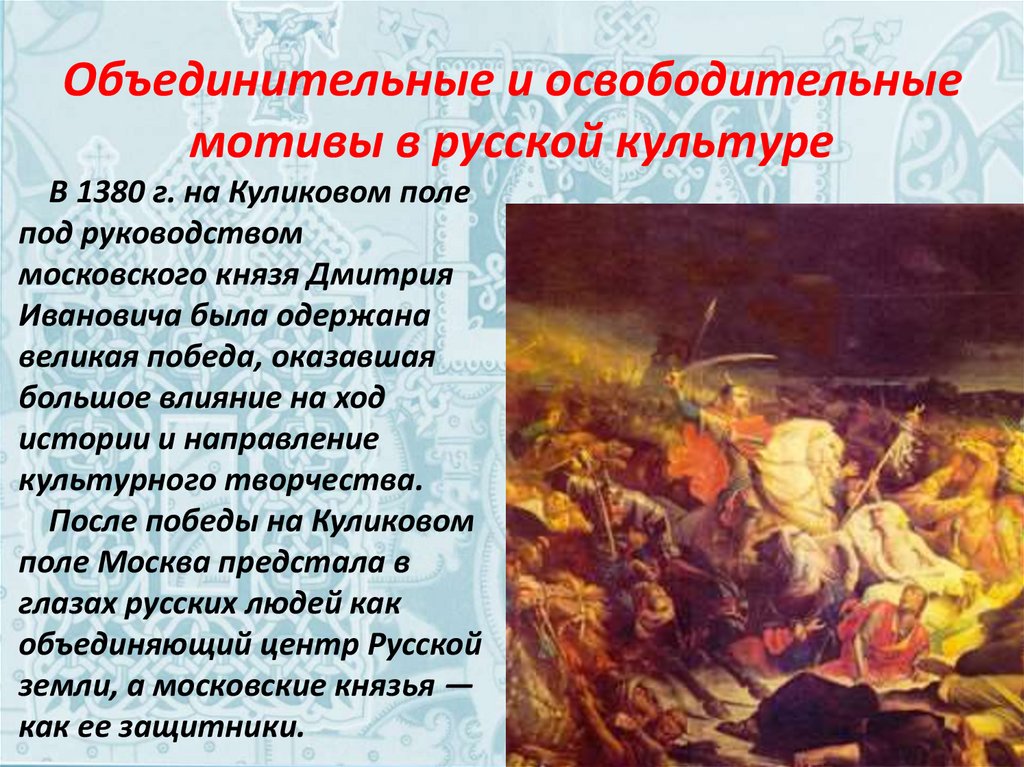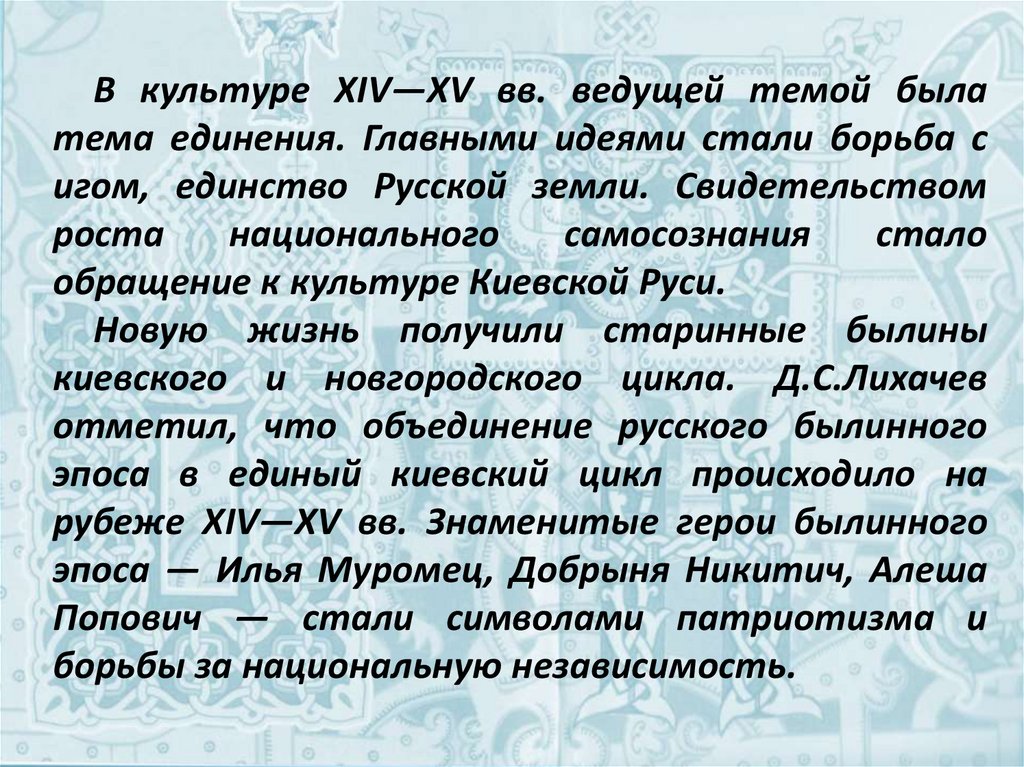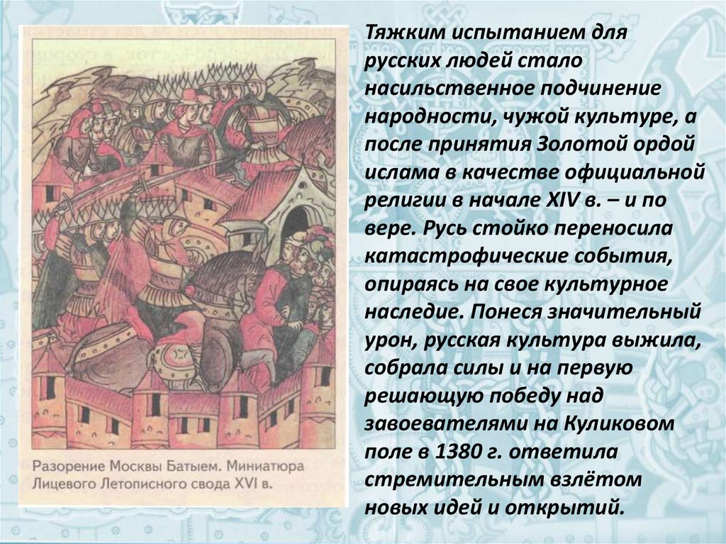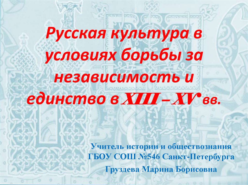 Русская культура в условиях борьбы за независимость и единство в XIII – XV вв