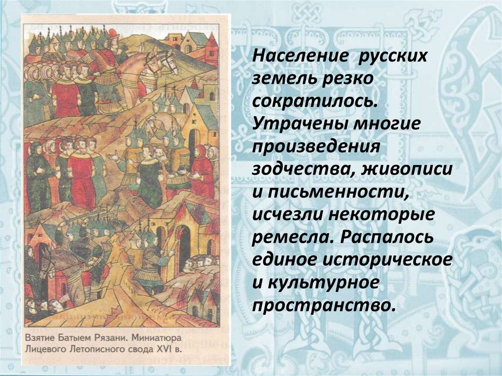 В 1237 -1240 гг. на русские земли, «посекаялюдей как траву», вторглись монгольские