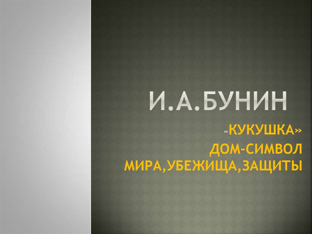 И.А. Бунин «Кукушка». Дом - символ мира, убежища, защиты