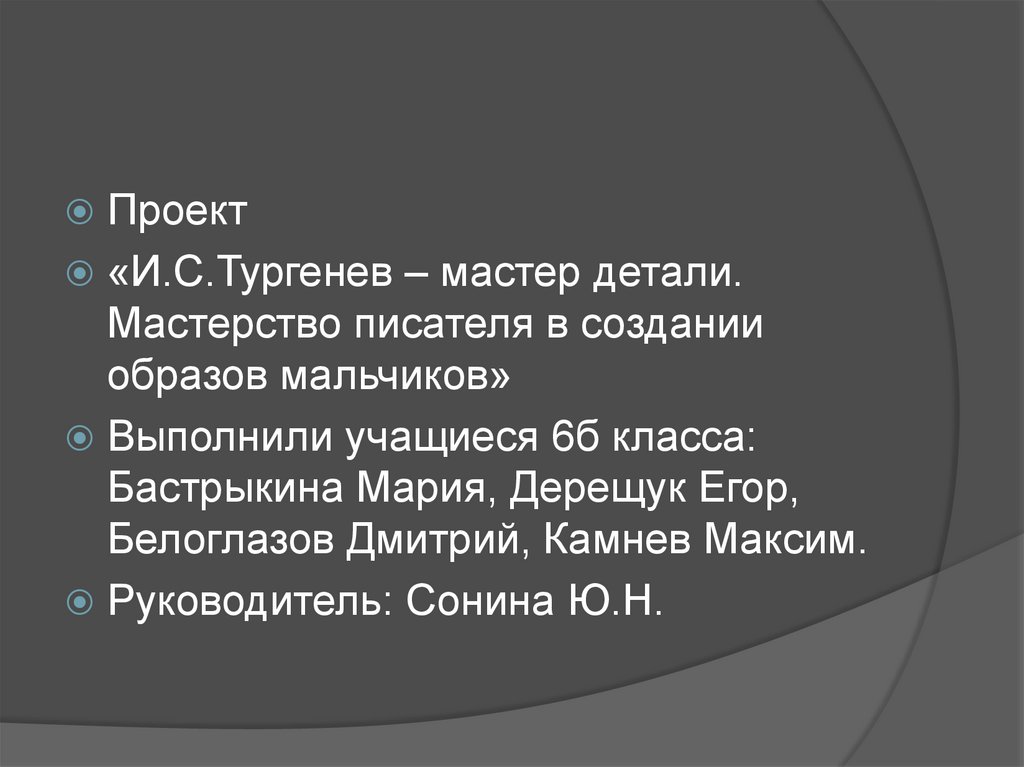 И.С. Тургенев – мастер детали. Мастерство писателя в создании образов мальчиков