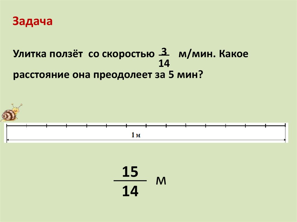 ЗадачаУлитка ползёт со скоростью 3 м/мин. Какое