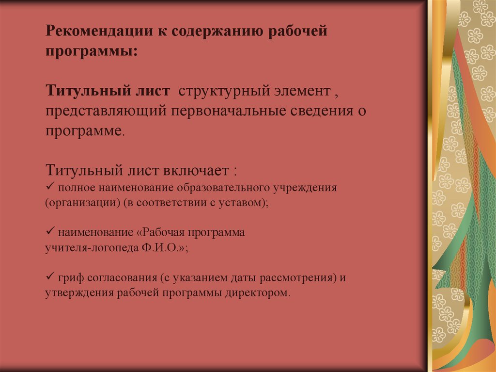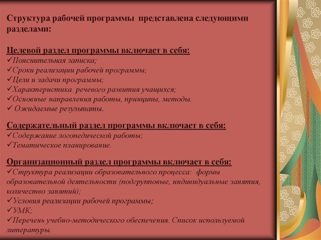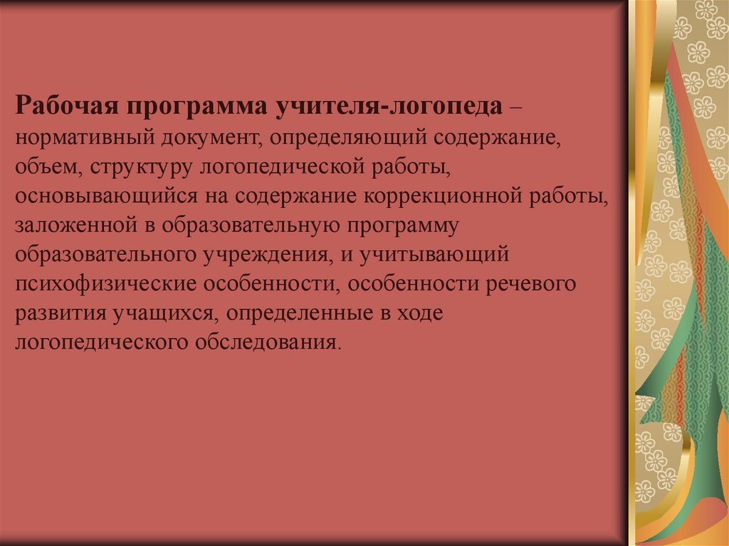 Рабочая программа учителя-логопеда –нормативный документ, определяющий содержание,