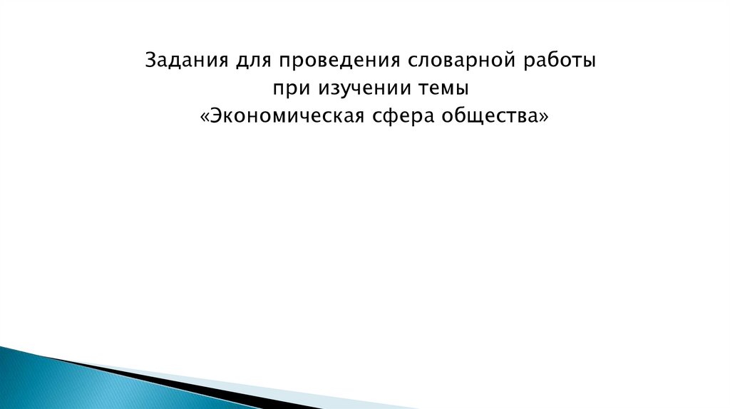 Задания для проведения словарной работы при изучении темы «Экономическая сфера общества»