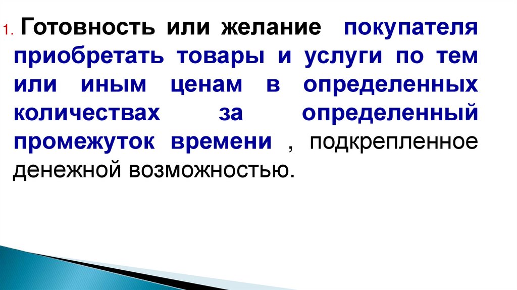 Готовность или желание покупателяприобретать товары и услуги по тем