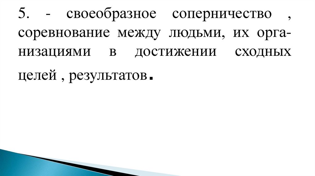 5. - своеобразное соперничество ,соревнование между людьми, их организациями в достижении сходных