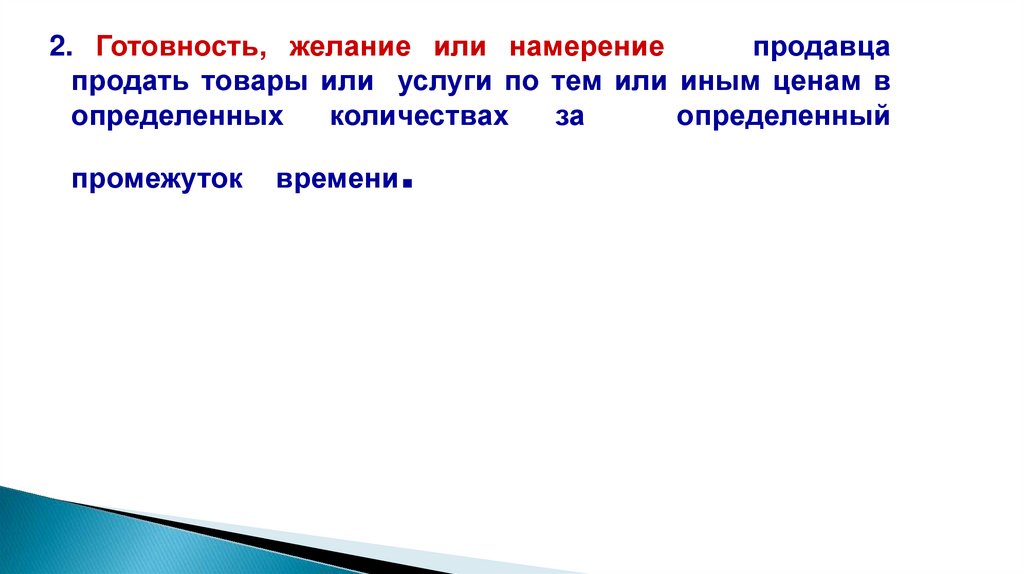 2. Готовность, желание или намерениепродавца