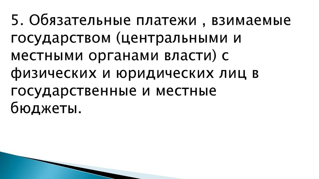 5. Обязательные платежи , взимаемыегосударством (центральными и
