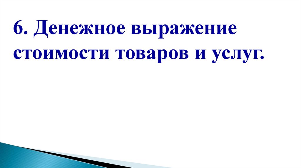 6. Денежное выражениестоимости товаров и услуг.