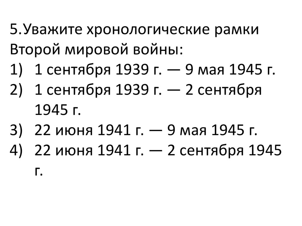 1) 1 сентября 1939 г. — 9 мая 1945 г.