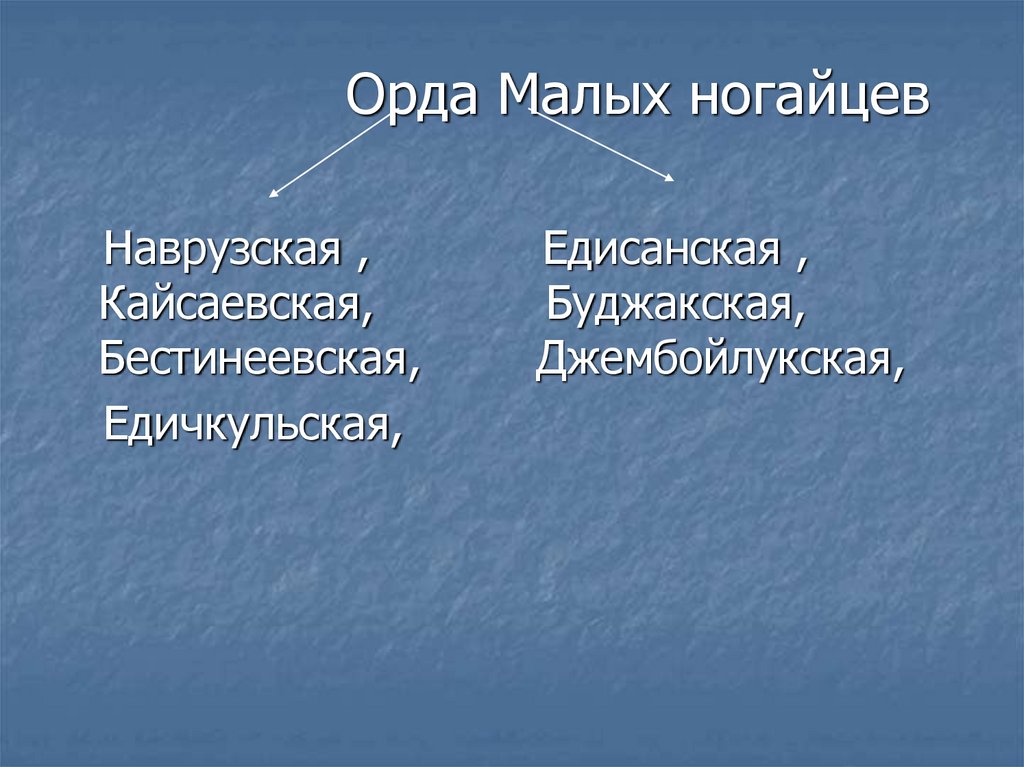 Четыре ногайские орды:Буджакская, Едисанская, Джембойлукская,