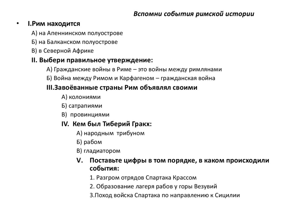Вспомни события римской историиI.Рим находится