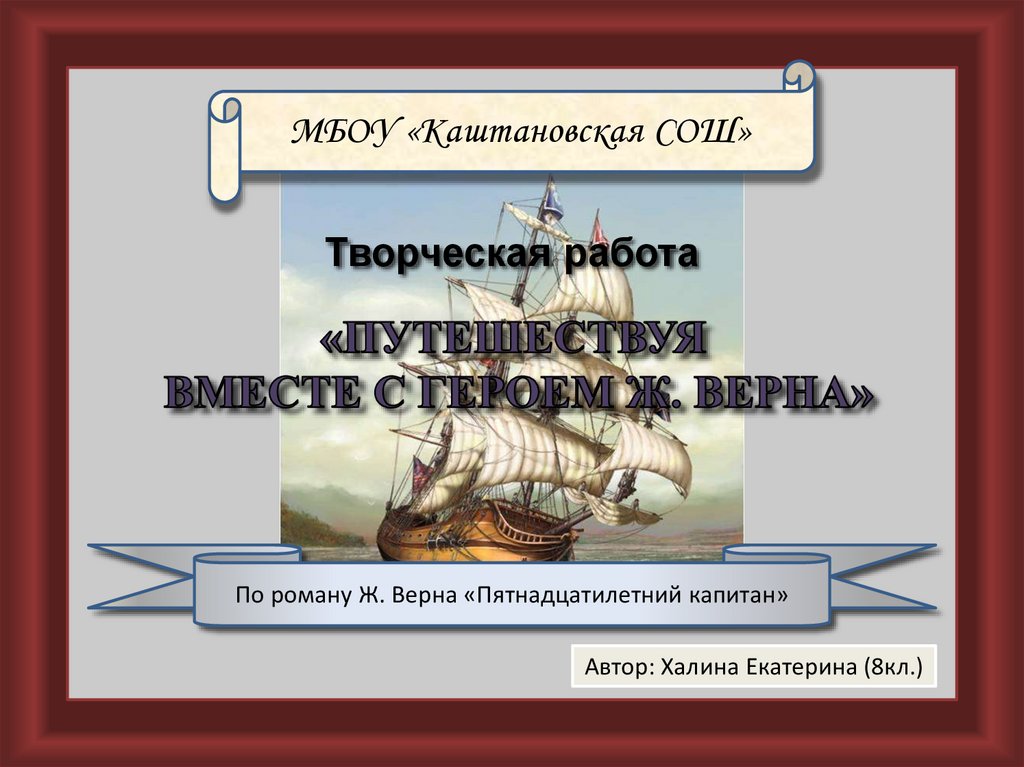 Творческая работа "Путешествуя вместе с героем Ж. Верна" (По роману Ж. Верна «Пятнадцатилетний капитан»)