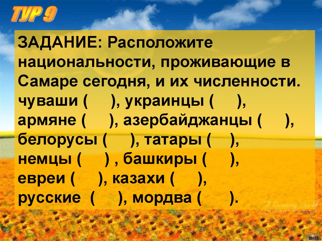 ЗАДАНИЕ: Расположитенациональности, проживающие в