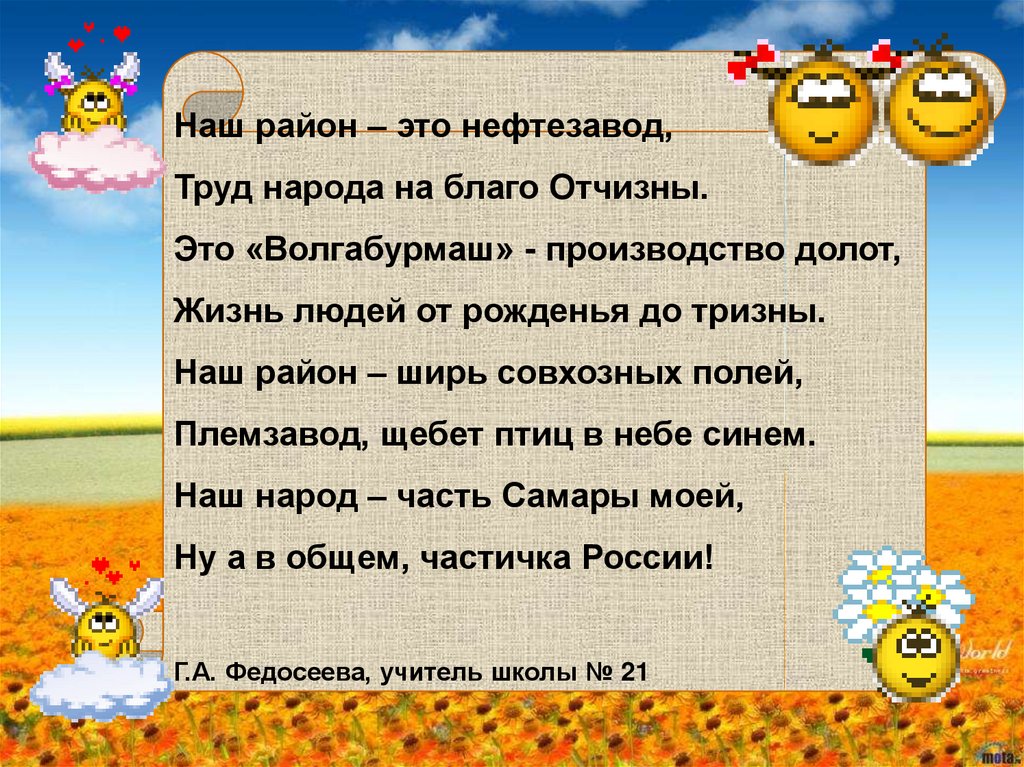 Наш район – это нефтезавод,Труд народа на благо Отчизны.