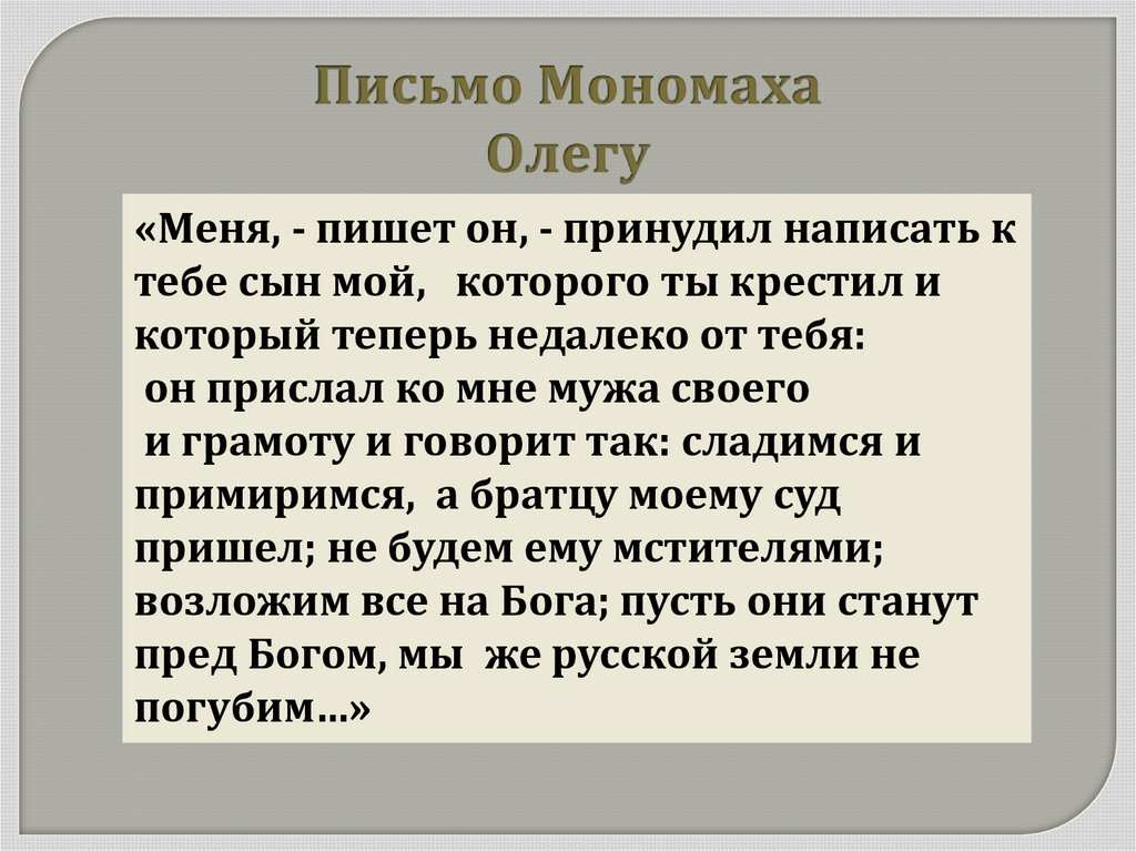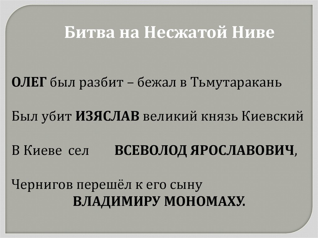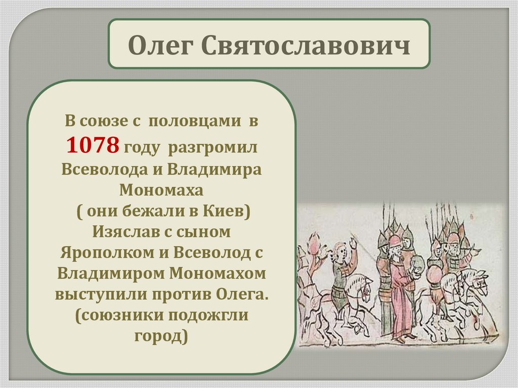 Олегу Святославичу. Тогда Владимир Мономах обосновался в