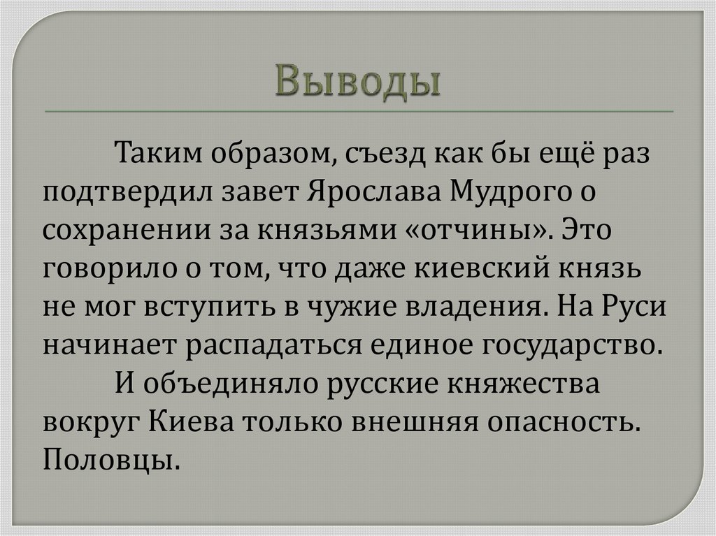 Съезд князей в городе Любече 1097г.« Зачем губим Русскую землю, сами
