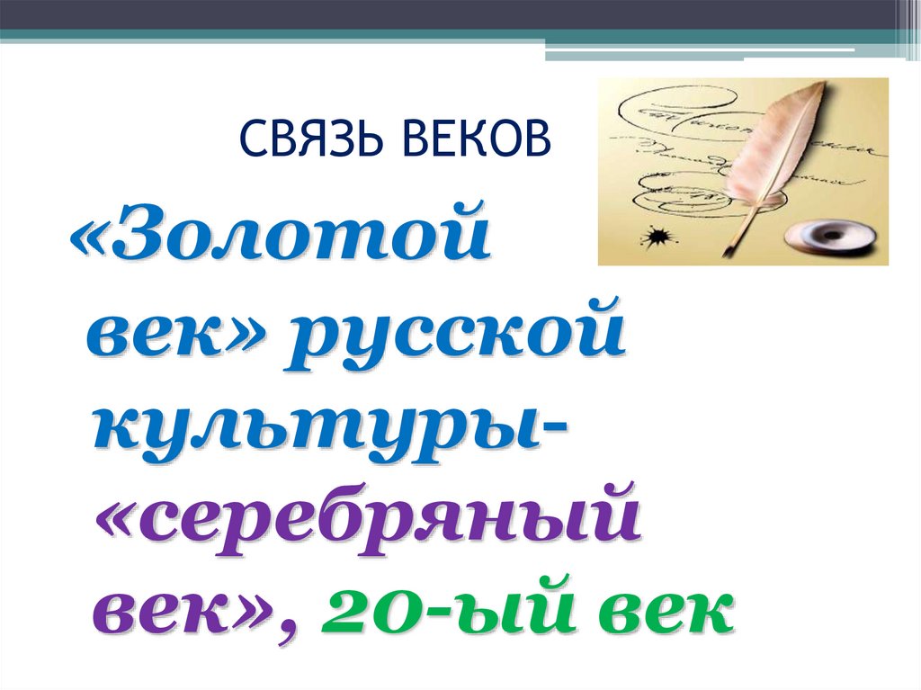 Связь веков. «Золотой век» русской культуры - «серебряный век», 20-ый век