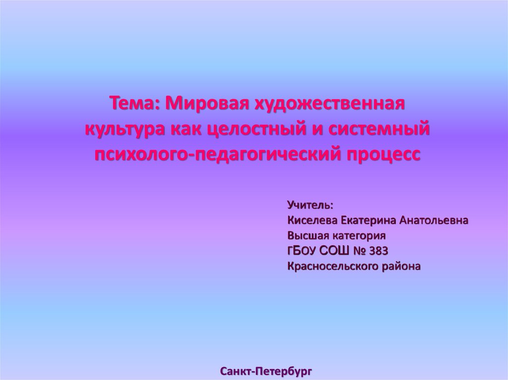 Мировая художественная культура как целостный и системный психолого-педагогический процесс