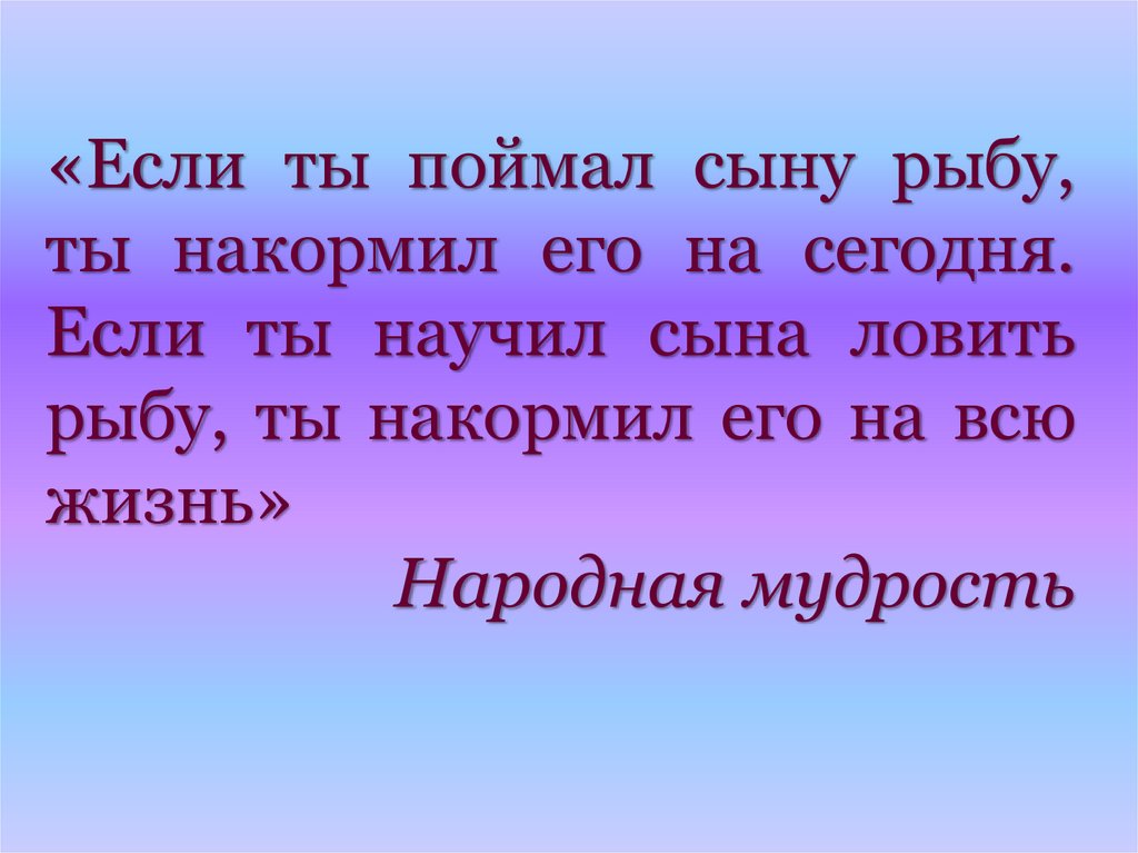 «Если ты поймал сыну рыбу,ты накормил его на сегодня.