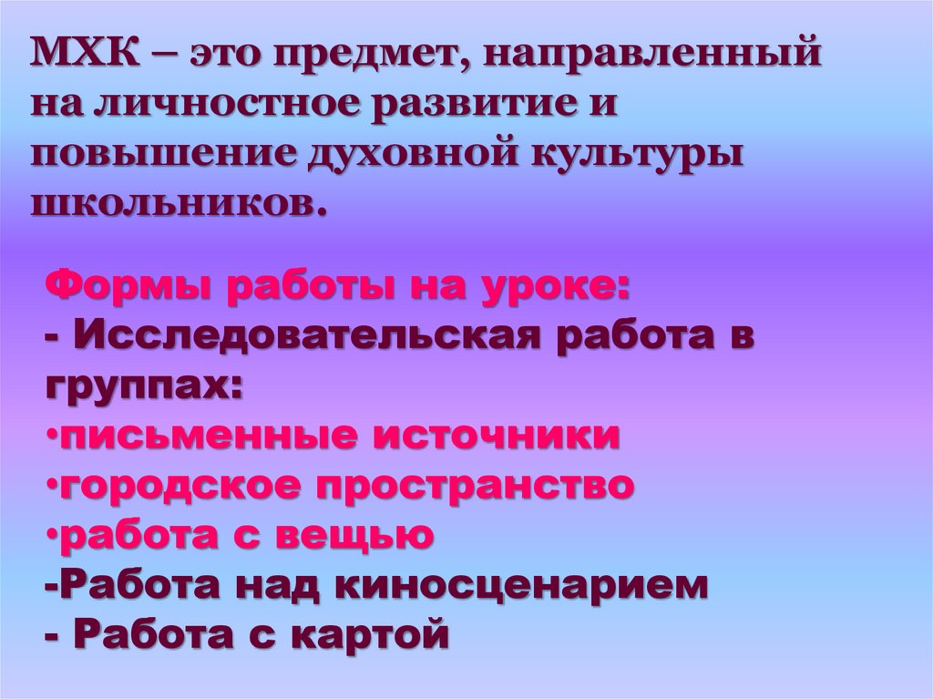 МХК – это предмет, направленныйна личностное развитие и