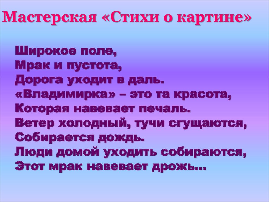 Мастерская «Стихи о картине»Широкое поле,