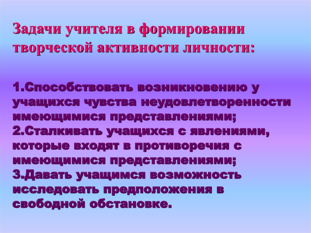 Задачи учителя в формированиитворческой активности личности: