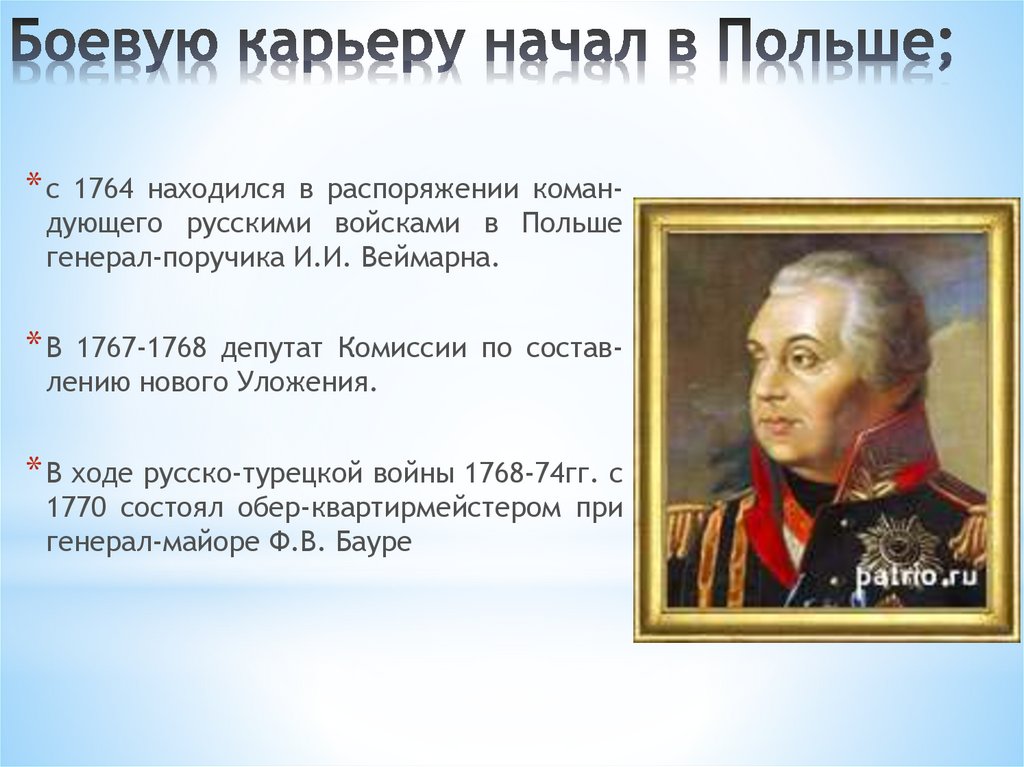 *с1764 находился в распоряжении командующего русскими войсками в Польше