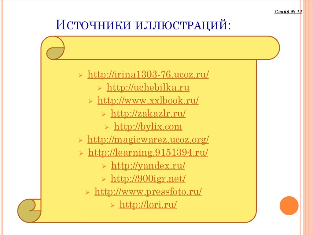 Слайд № 12ИСТОЧНИКИ ИЛЛЮСТРАЦИЙ: