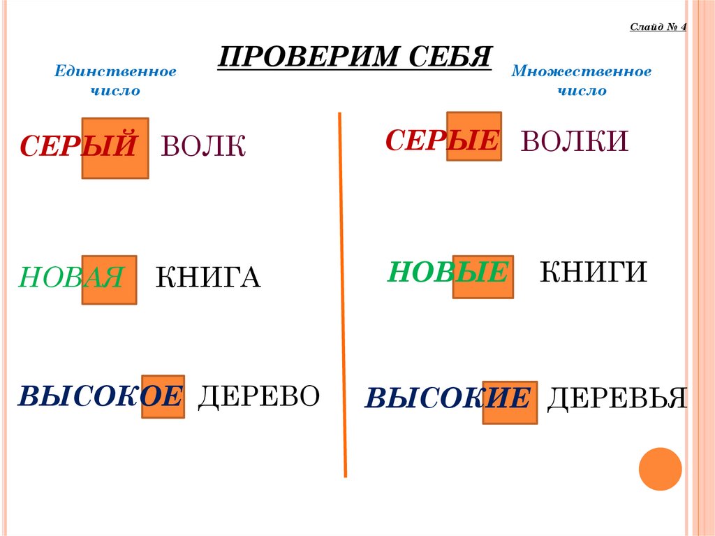 Изменение прилагательных по числам