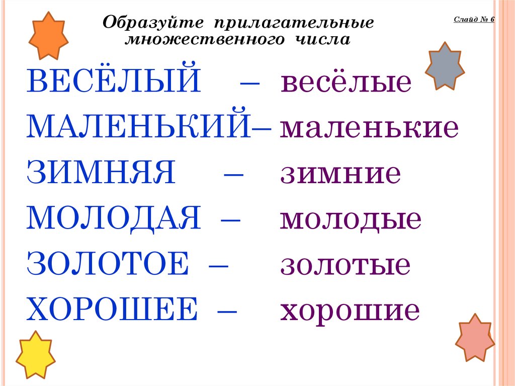 Образуйте прилагательныемножественного числа