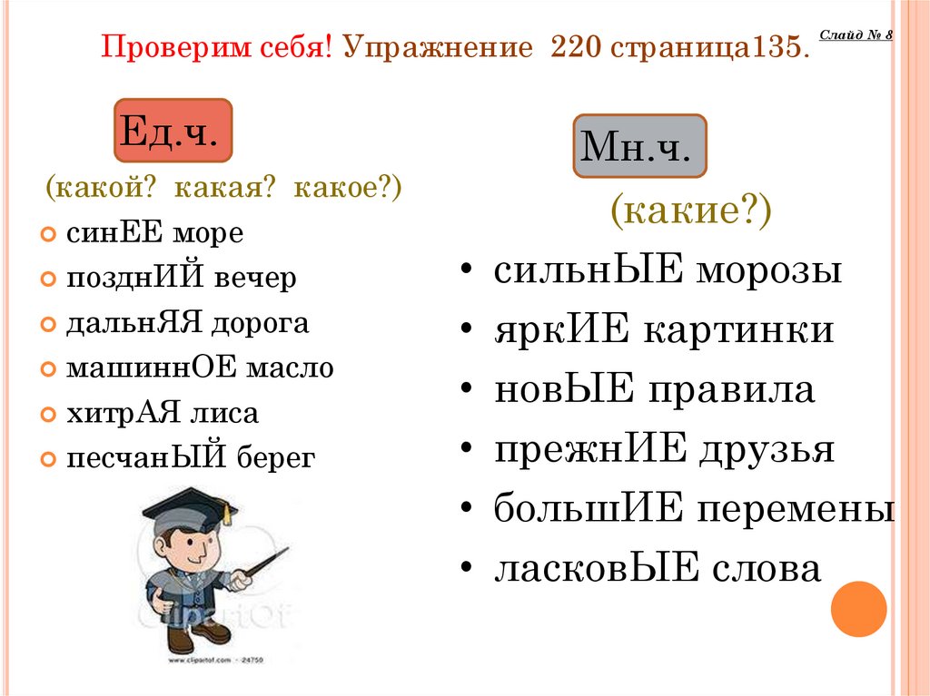 Проверим себя! Упражнение 220 страница135.Ед.ч.