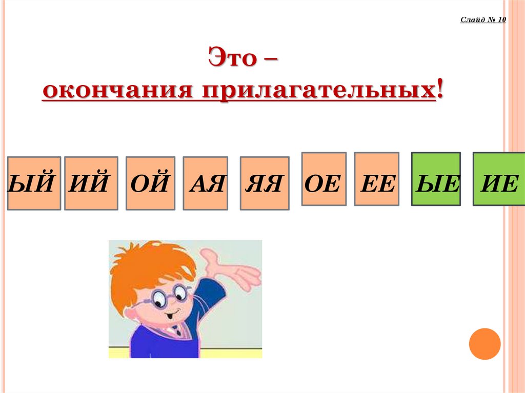 ЫЙ ИЙ ОЙ АЯ ЯЯ ОЕ ЕЕ ЫЕ ИЕ