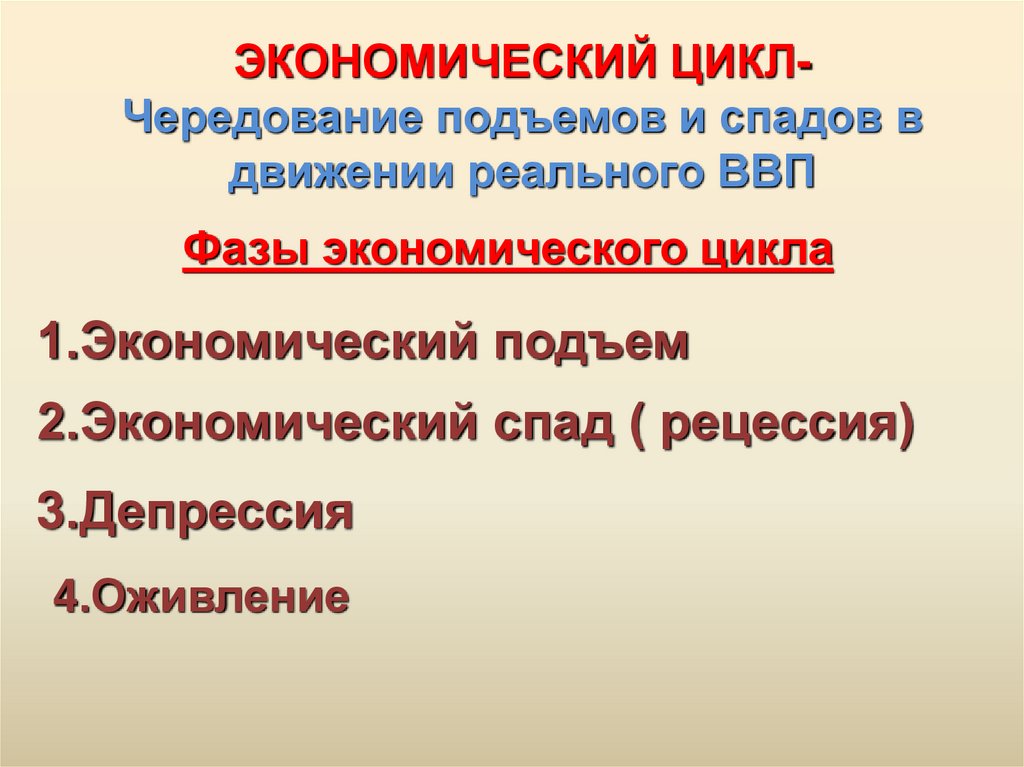 ЭКОНОМИЧЕСКИЙ ЦИКЛЧередование подъемов и спадов вдвижении реального ВВП