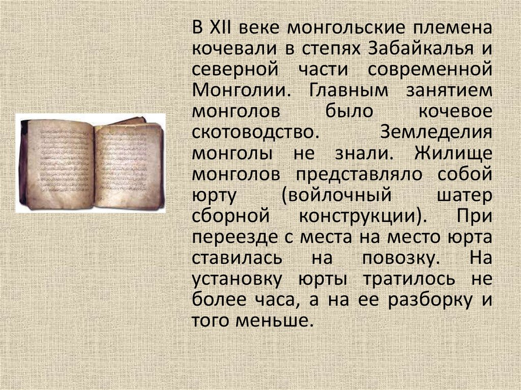 В XII веке монгольские племенакочевали в степях Забайкалья и