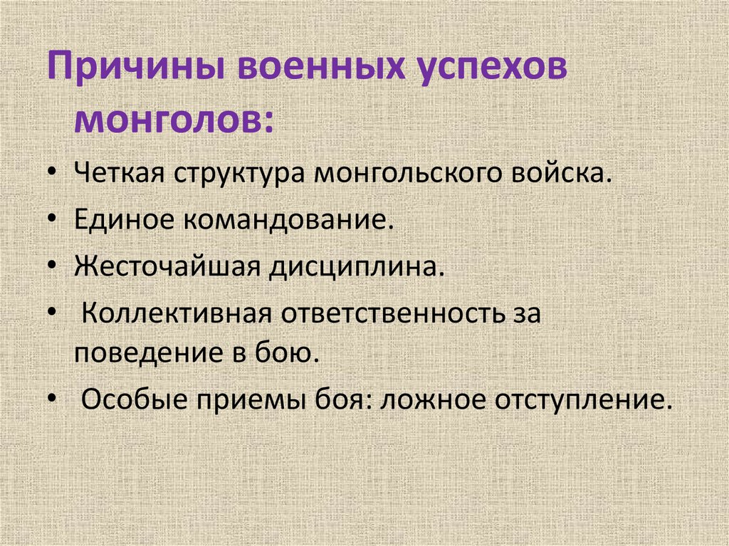 Причины военных успеховмонголов:
